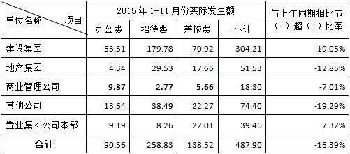 2015年1至11月份全集團三項費用(yòng)共計發生487.9萬元,與上年同期相比下降16.39%。實際發生數據見下表: 三項費用(yòng) ...